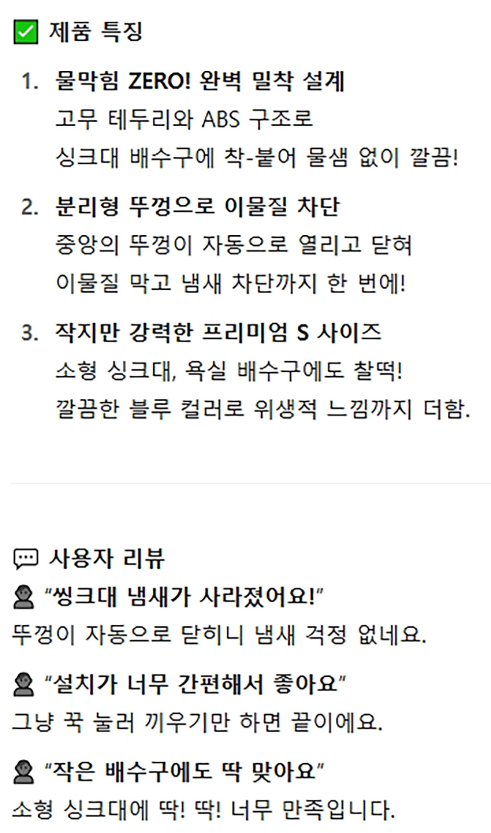 배수구 안을 가려주고 냄새방지 고급 싱크대 덮개