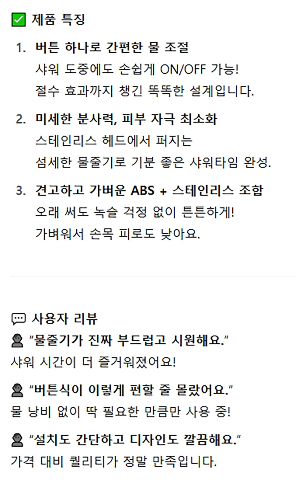버튼 하나로 간편한 물조절 절수형 욕실 샤워헤드