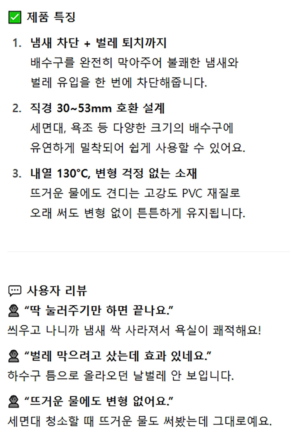 불쾌한 냄새 벌레 유입 한번에 차단 세면대 욕조 덮개