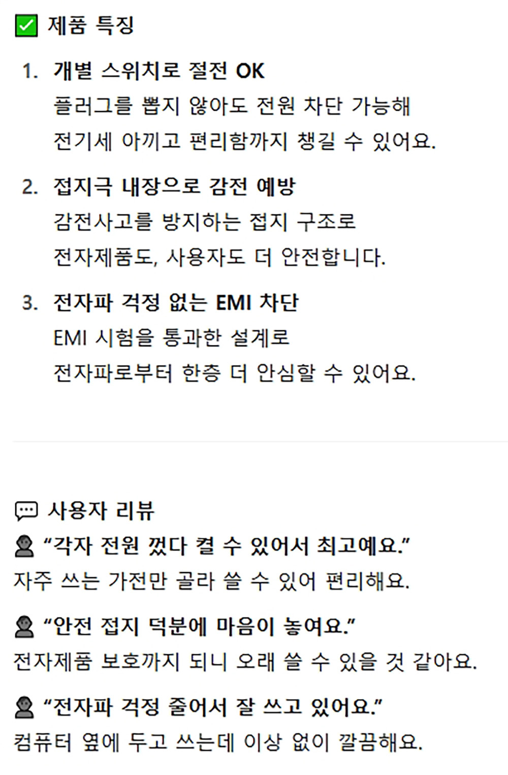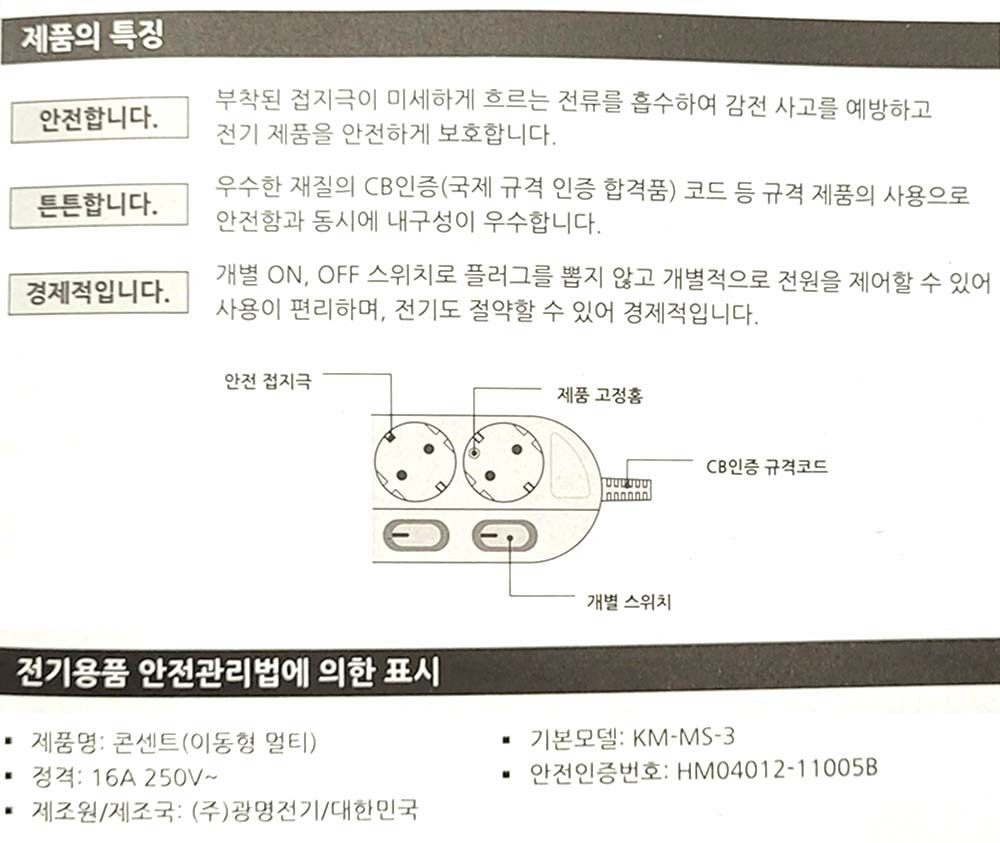 안전접지극부착 개별 전원스위치 멀티탭 2구 5호 4.4m