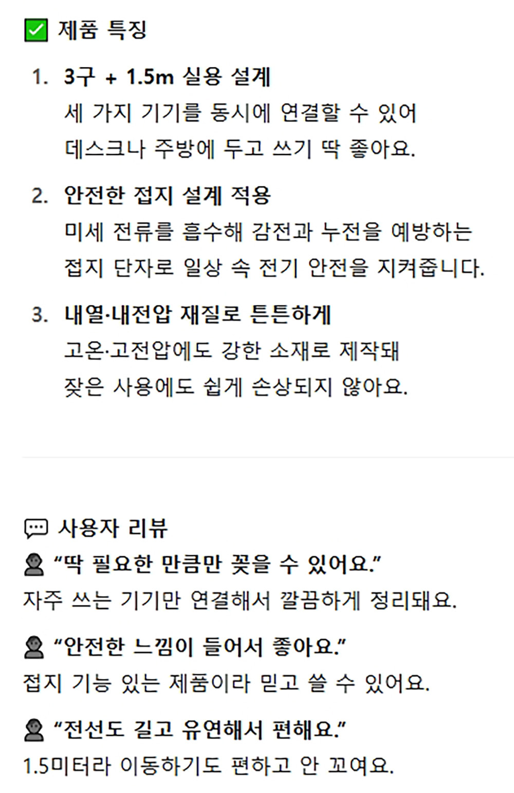 안전성과 실용성이 뛰어난 멀티탭 3구 2호 1.5m