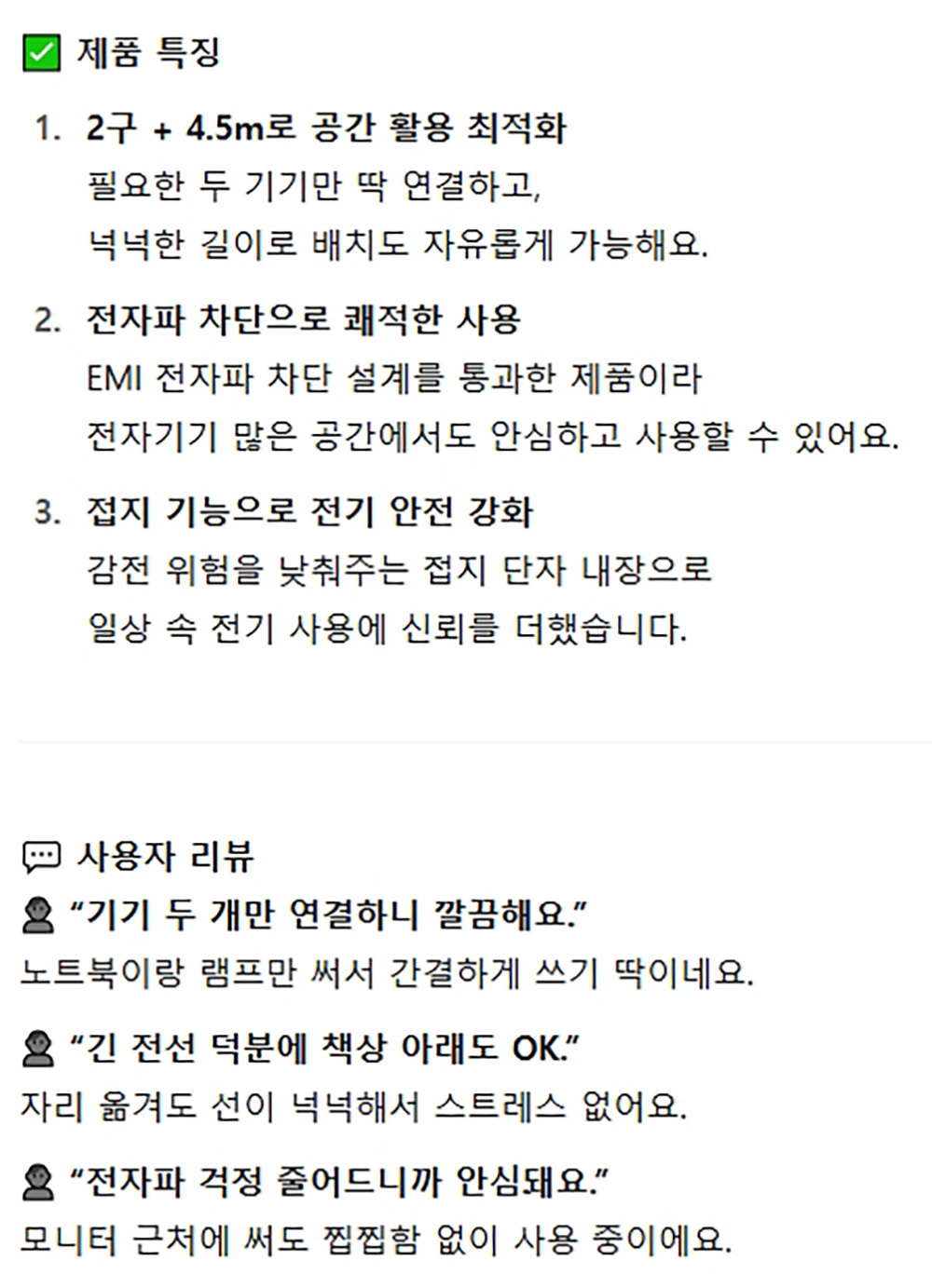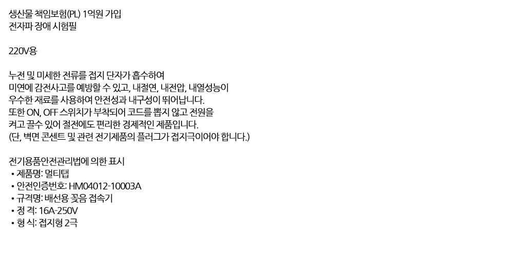 안전성과 실용성이 뛰어난 멀티탭 2구 5호 4.5m