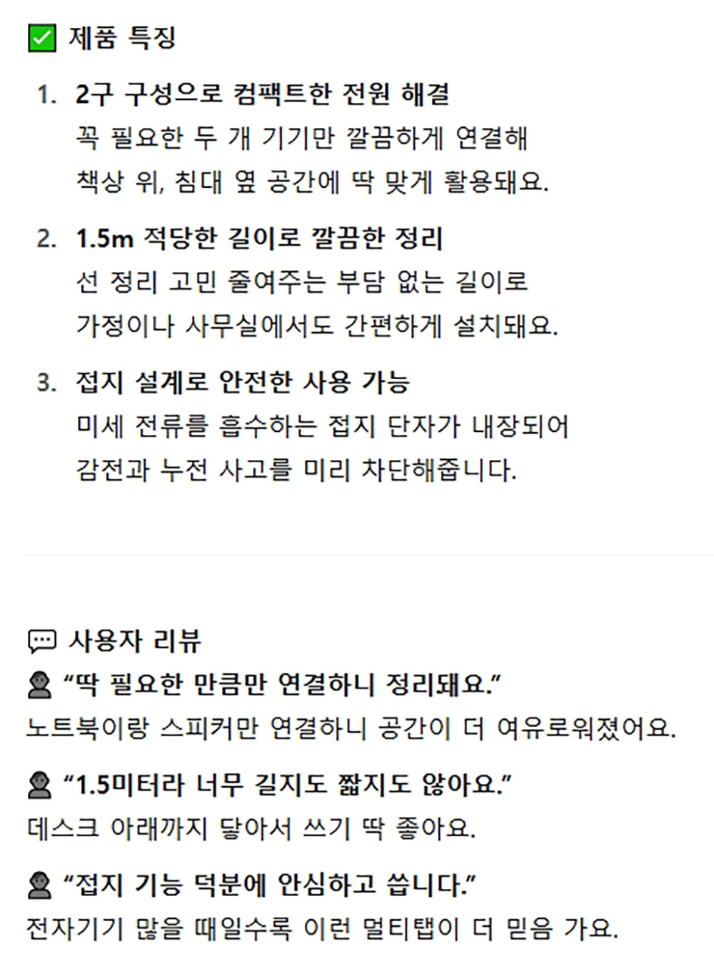 안전성과 실용성이 뛰어난 멀티탭 2구 2호 1.5m