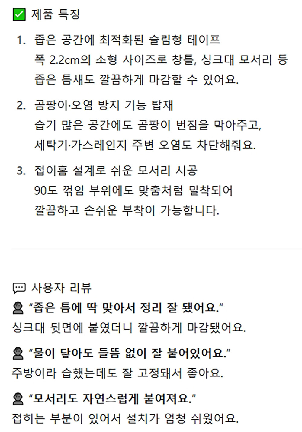 욕실 주방 창문결로 부분 곰팡이 커버 테이프 소형