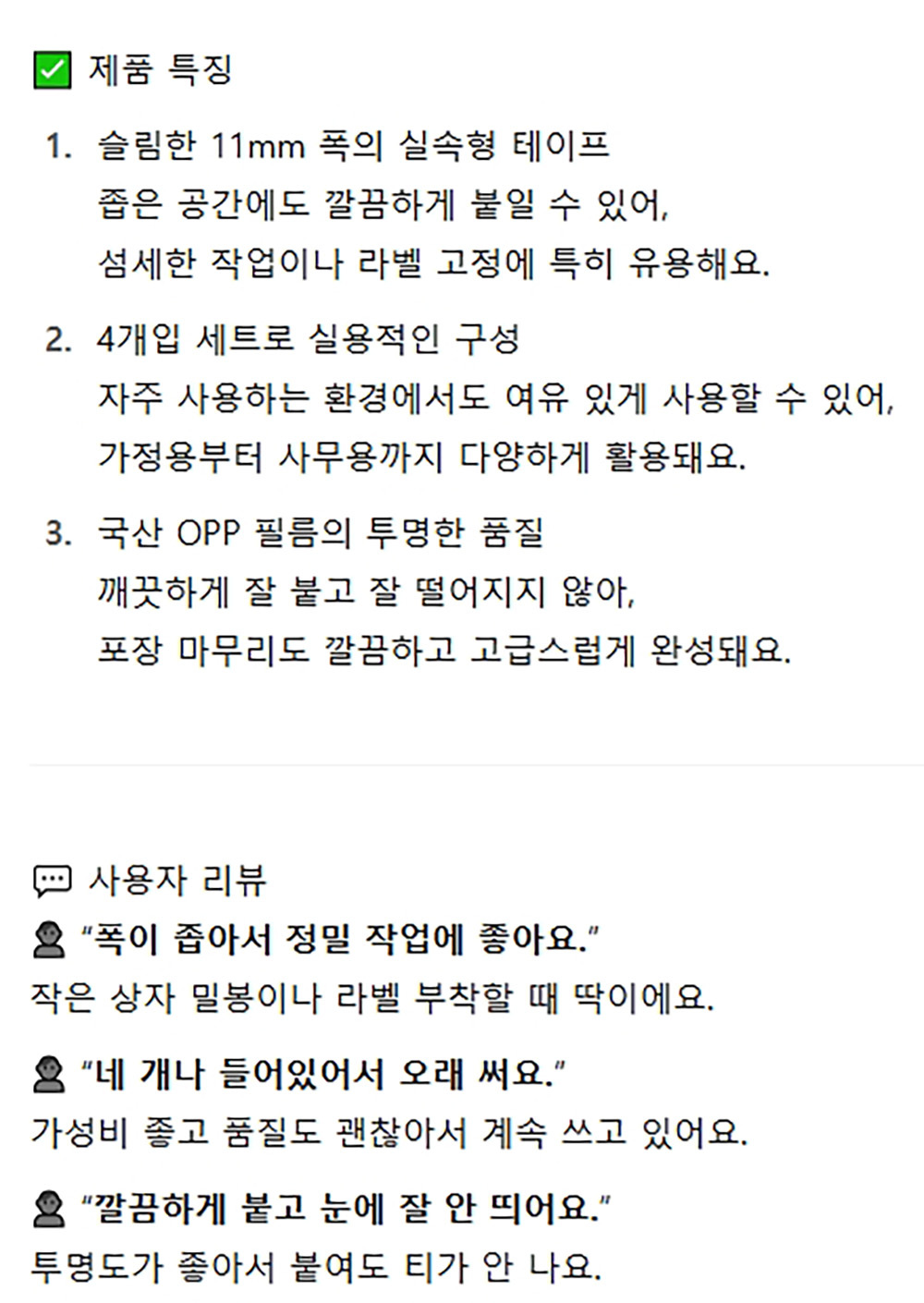슬림한 폭 국산 실속형 포장 투명 테이프 11mm 25M 4P