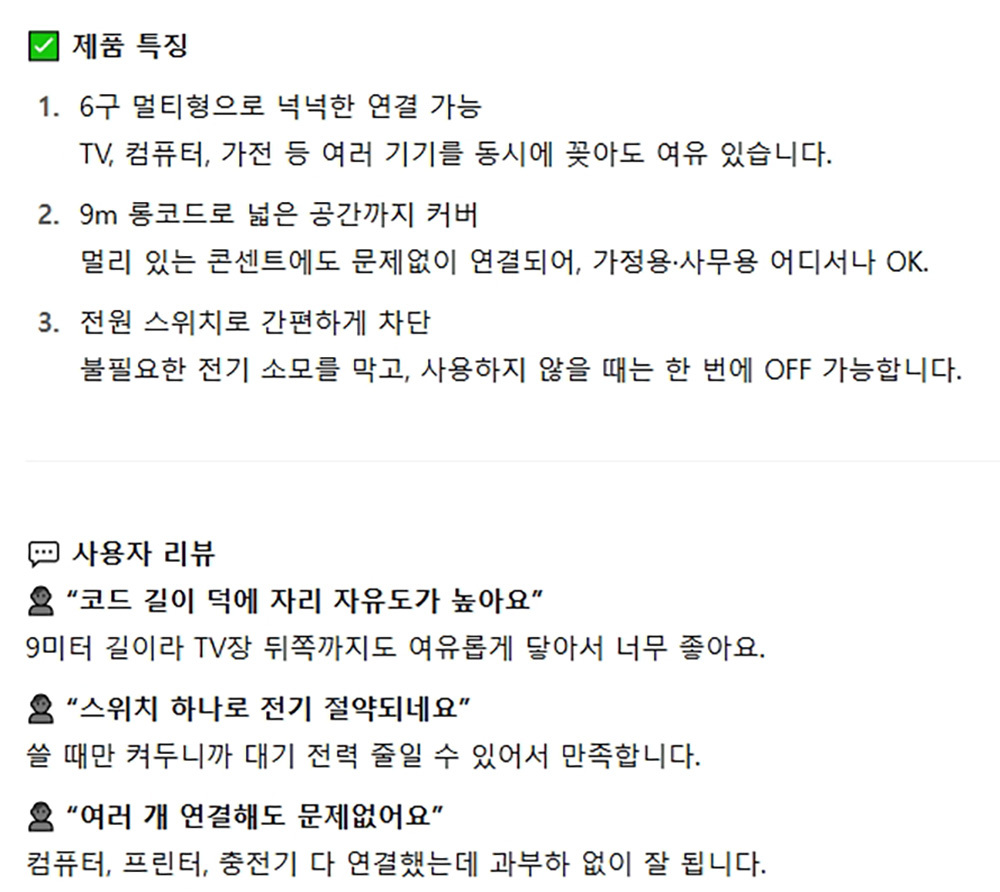 전기소모 과열위험 줄여주는 스위치 멀티탭 6구 9M