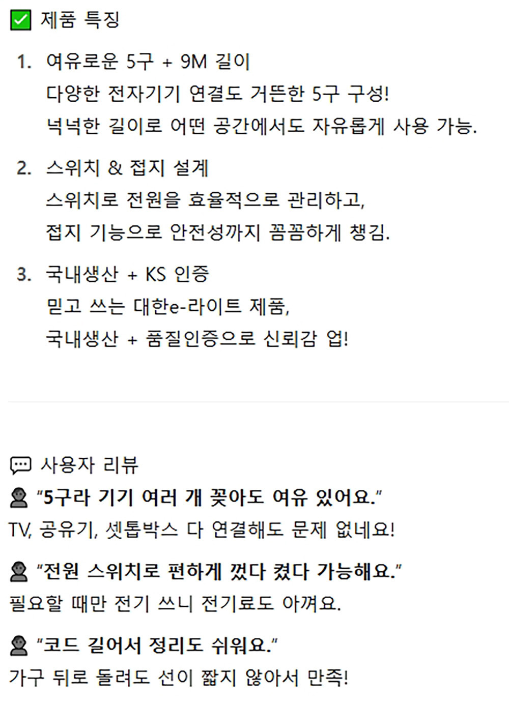 전기소모 과열위험 줄여주는 스위치 멀티탭 5구 9M