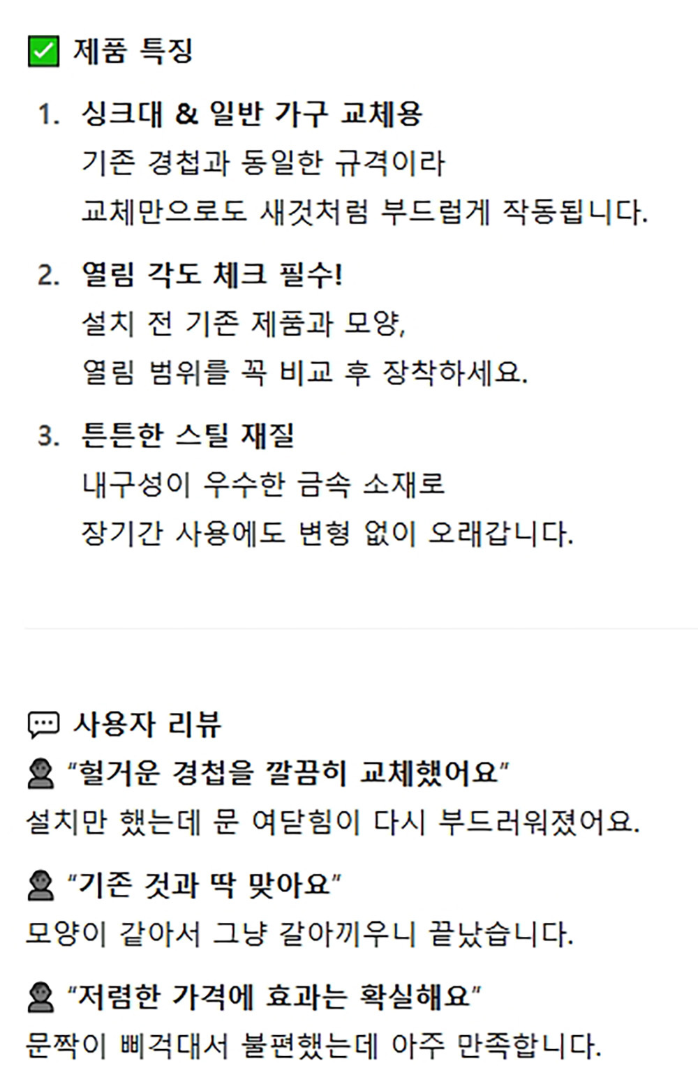 일반 가구 씽크대 문에 연결시 사용 교체용 씽크경첩