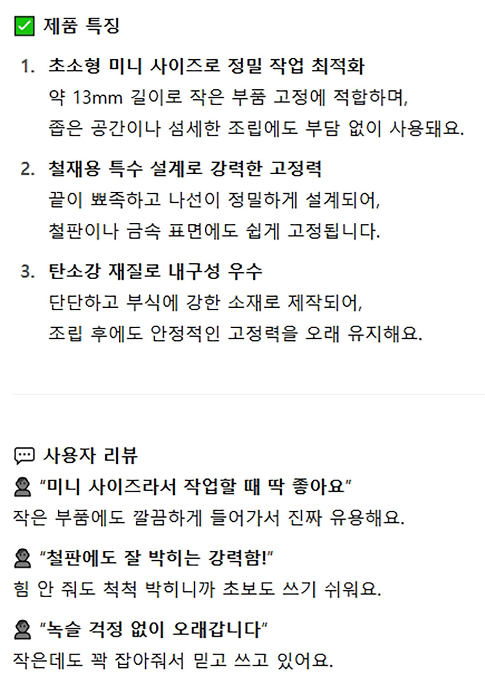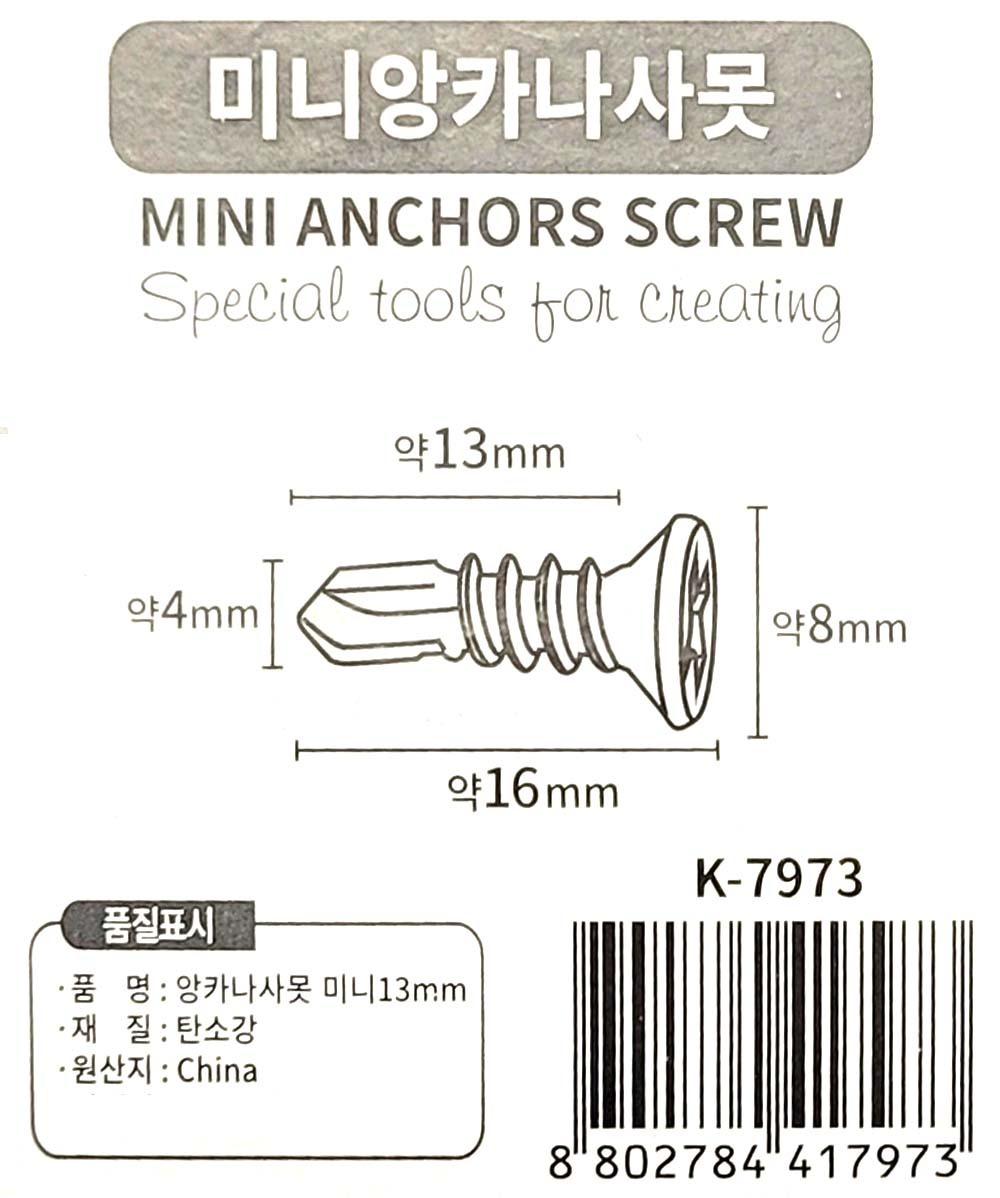 단단하고 내구성 좋은 미니 앙카 나사못 철재용 13mm