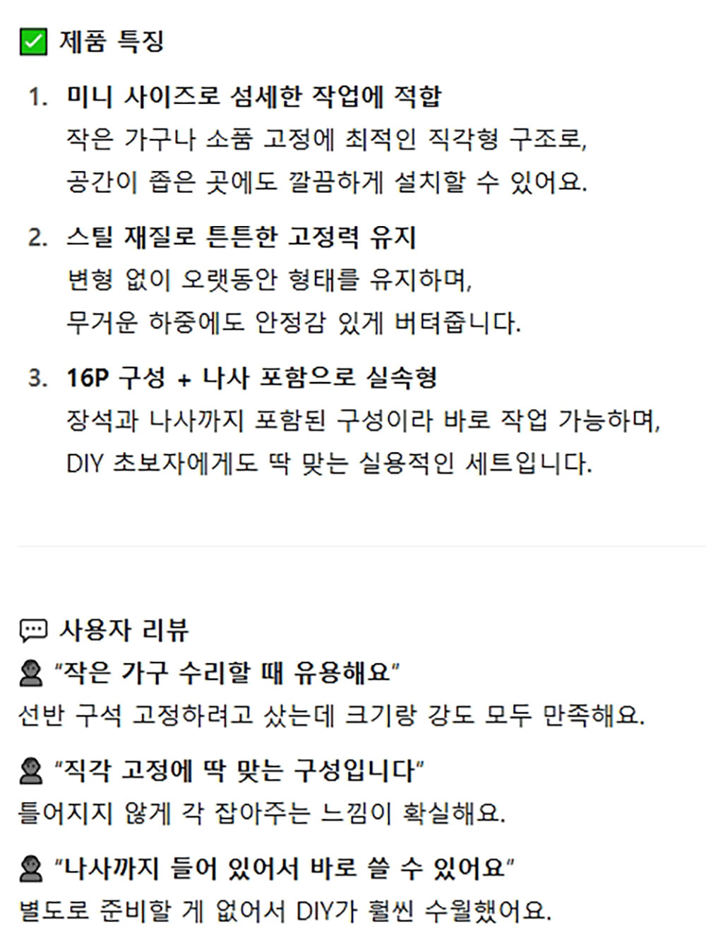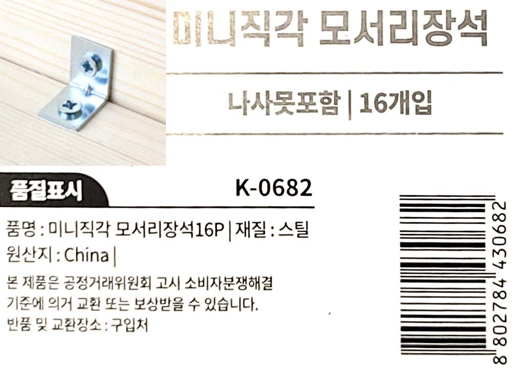 책상 책장 선반 모서리설치 미니직각 모서리장석 16입