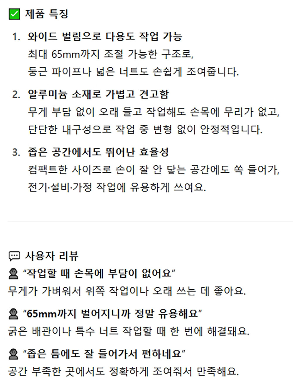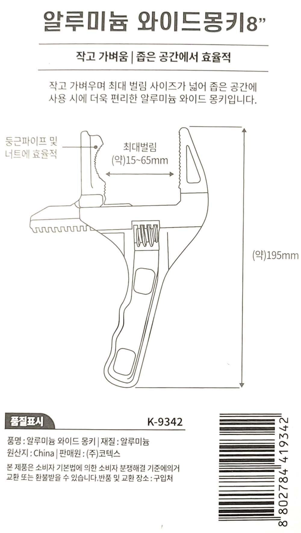 작고 가벼움 좁은 공간 알루미늄 와이드 몽키 195mm