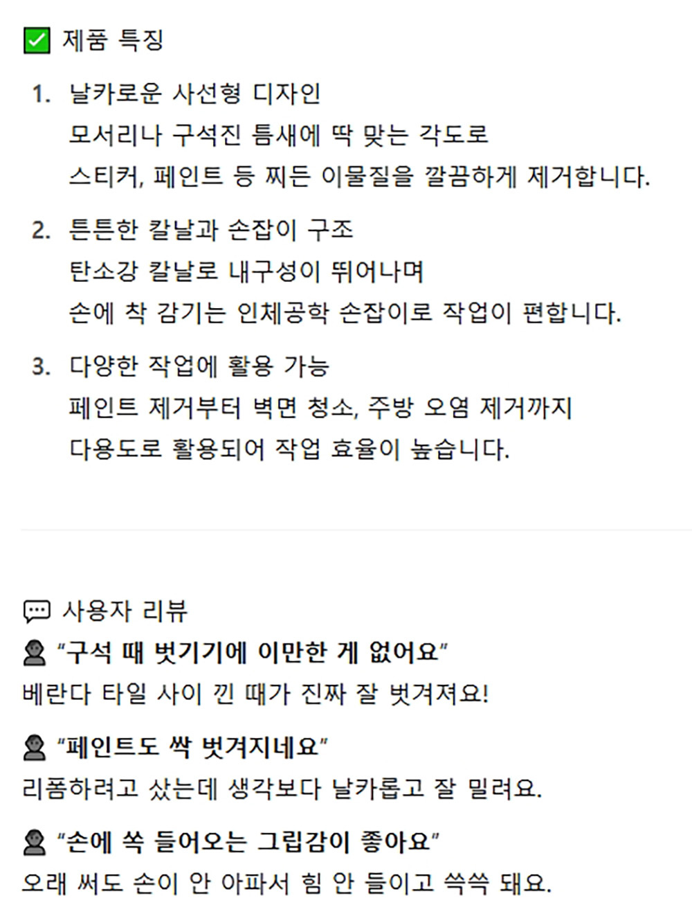 모서리 벽면작업 페인트 스티커제거 갈고리 스크래퍼