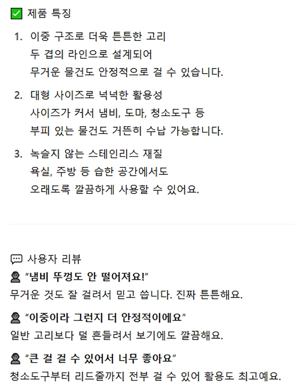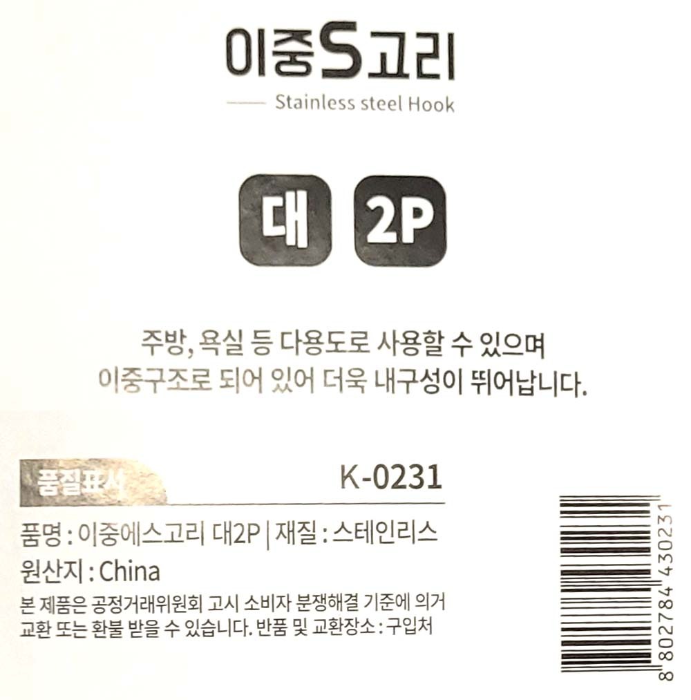 이중구조 내구성 뛰어난 주방 욕실 에스고리 대 2P