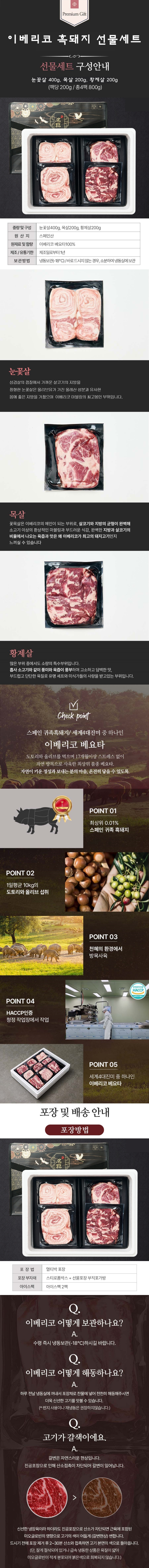 이베리코 돼지고기 선물세트 800g 눈꽃살 목살 황제살