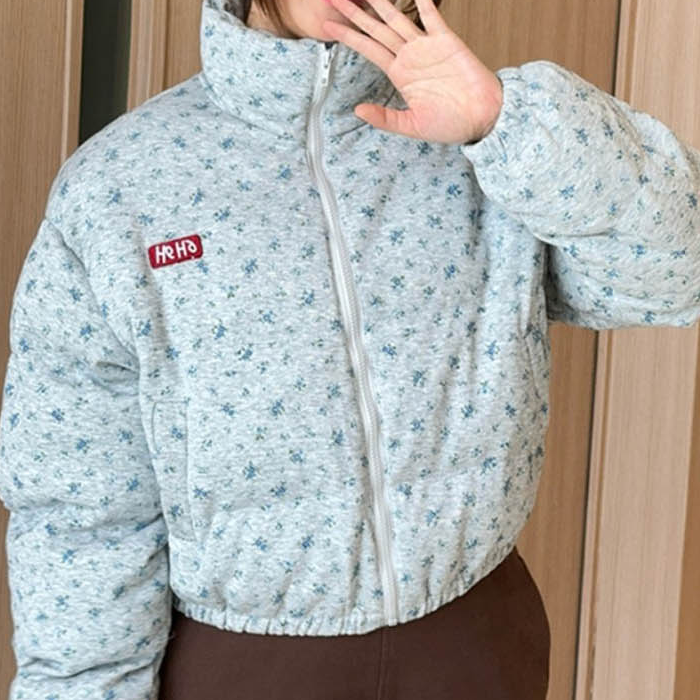 겨울 여성점퍼 하이넥 디자인 플라워 패턴 숏패딩