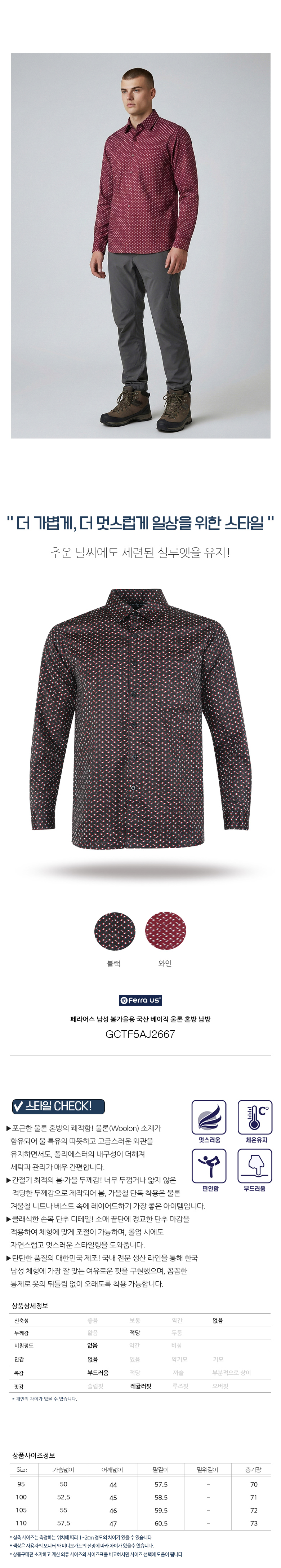 페라어스 남성 봄가을용 국산 베이직 울론 혼방 남방 GCTF5AJ2667
