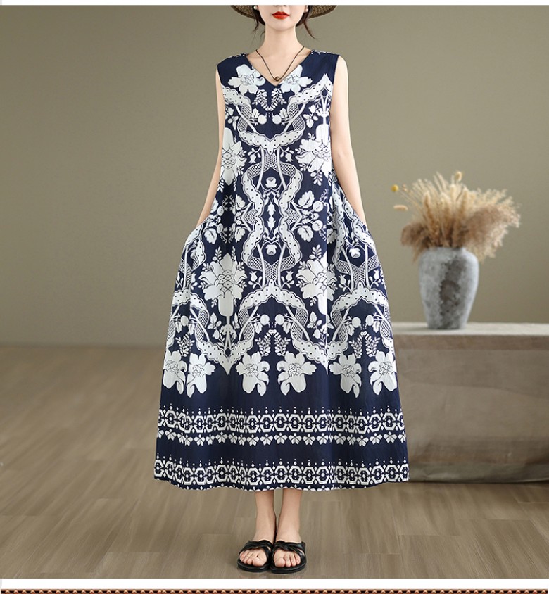 S103031 상큼 시원한 프린팅 휴가 비치 데일리 여름 썸머 V넥 민소매 나시 롱 원피스