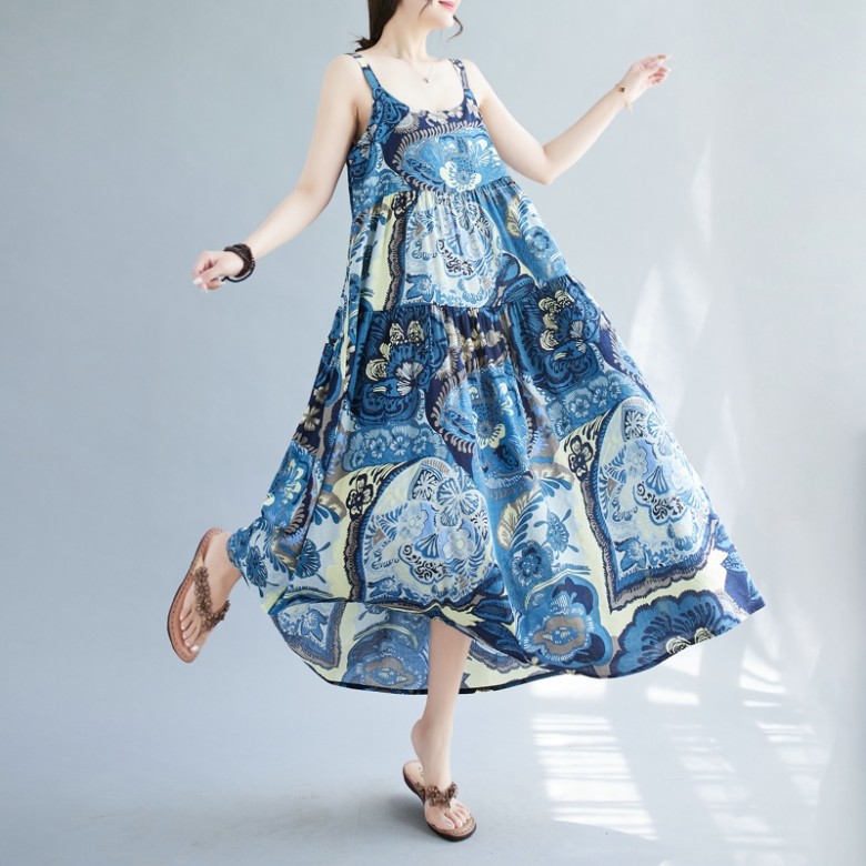 S320111 상큼 시원한 프린팅 휴가 비치 데일리 여름 썸머 민소매 나시 롱 원피스