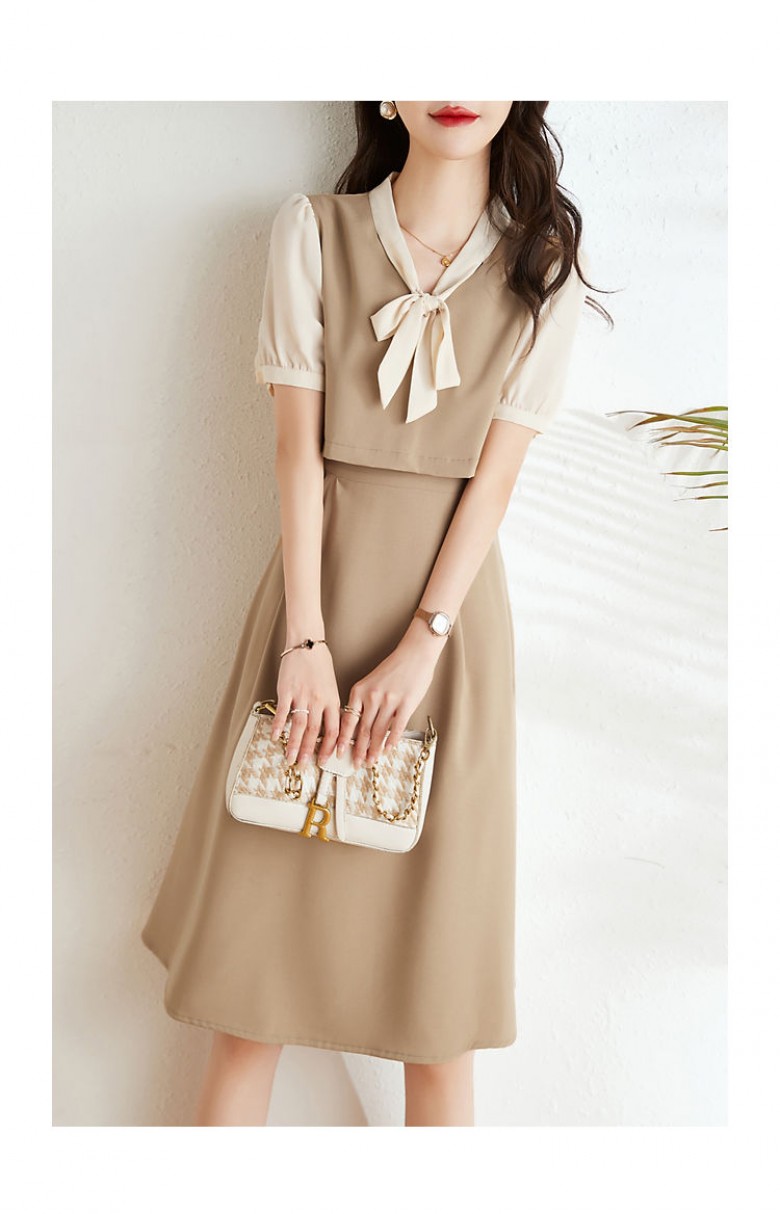 S013610 리본 v넥 깔끔 우아 출근 데일리 반팔 원피스 여름 썸머