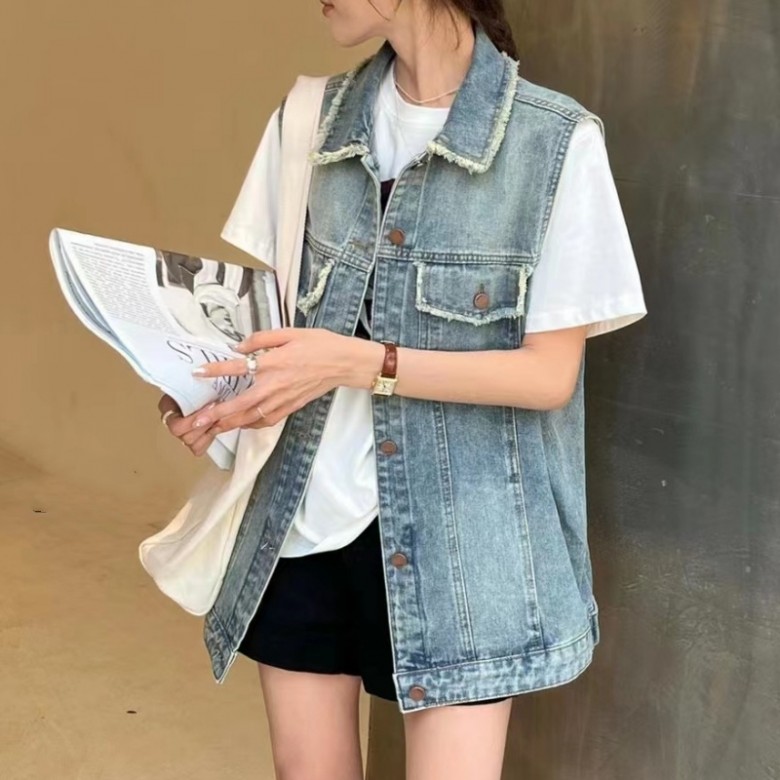 F230810 빈티지 올풀림 루즈핏 청 데님 조끼 vest