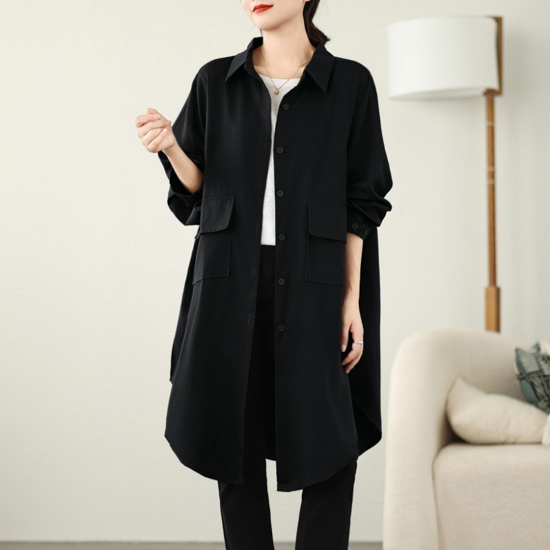 F982931 3컬러 큰사이즈 봄 가을 간절기 바람막이 롱 셔츠 아우터 남방