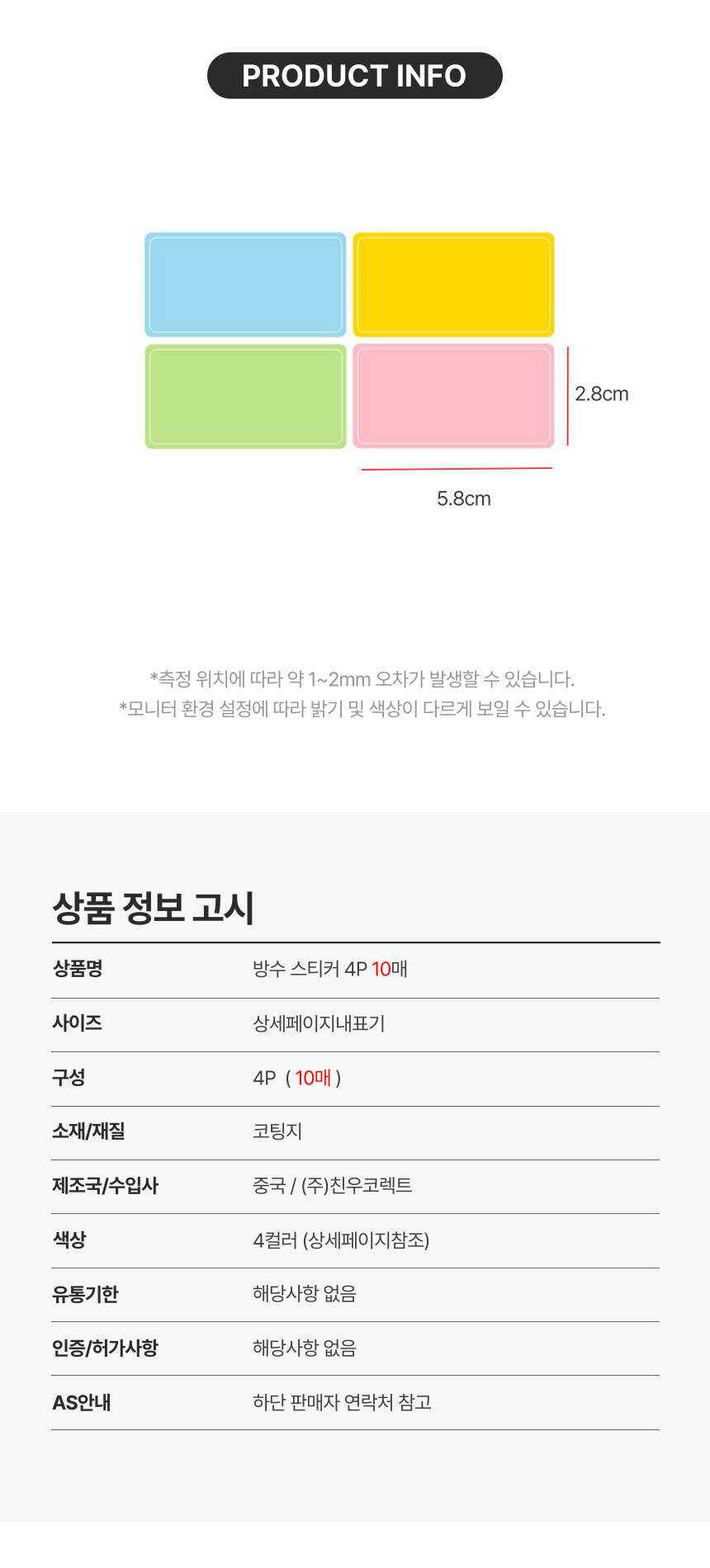 • 방수 스티커 10매