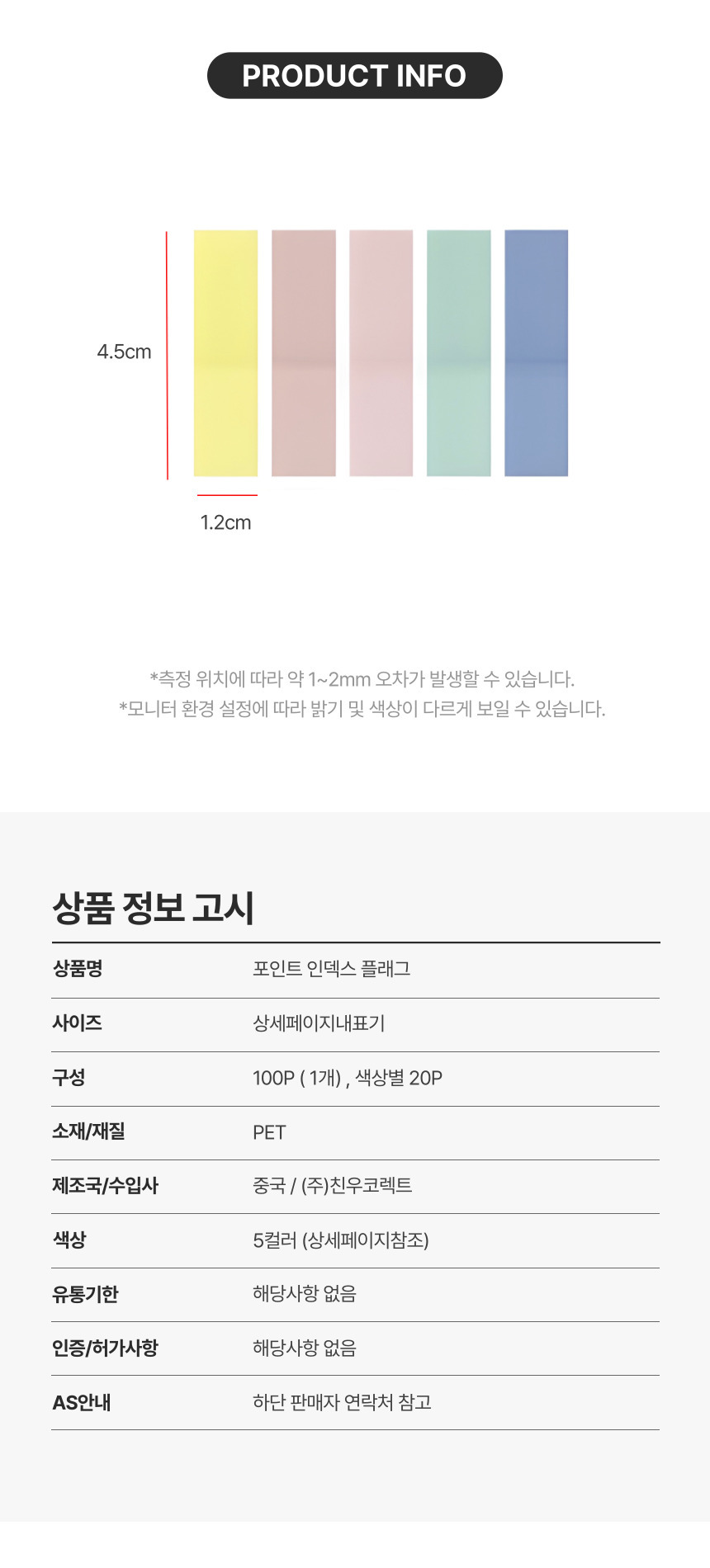 사각 포인트 분류 필름 인덱스 플래그 메모 북마크 책갈피 다꾸 점착메모지 스티커