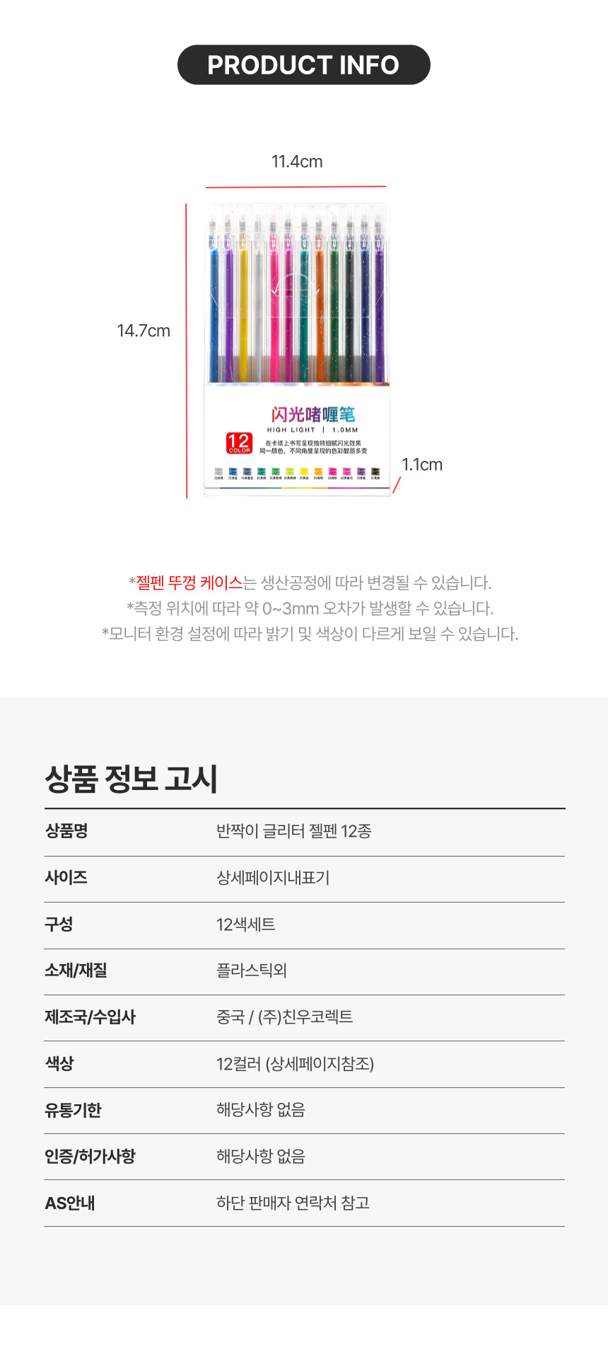 반짝이 글리터 젤펜 12종 세트