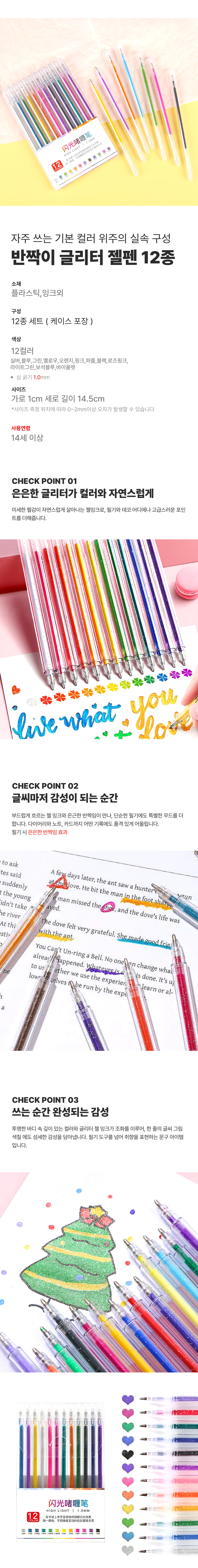 • 반짝이 글리터 젤펜 12종 세트