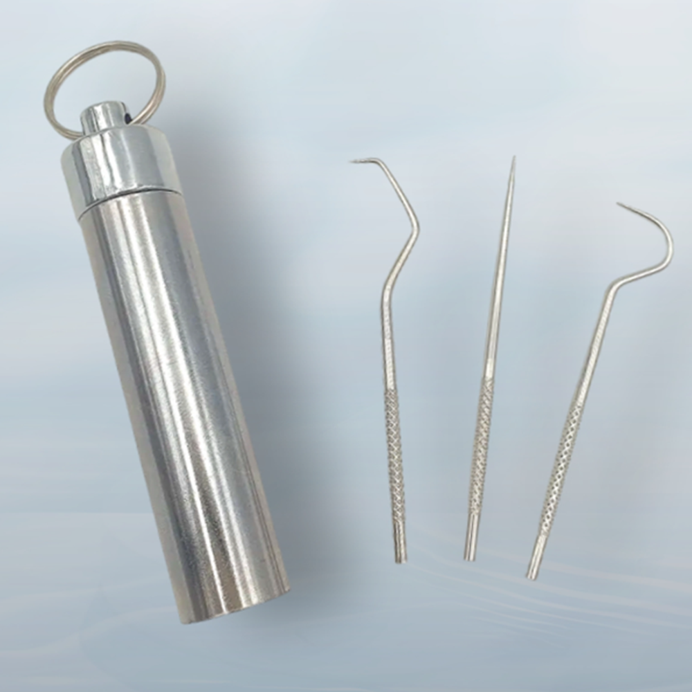휴대용 치석제거 이쑤시개 세트 (3종) 스테인리스 보관케이스 포함 구강관리 치아 스텐통