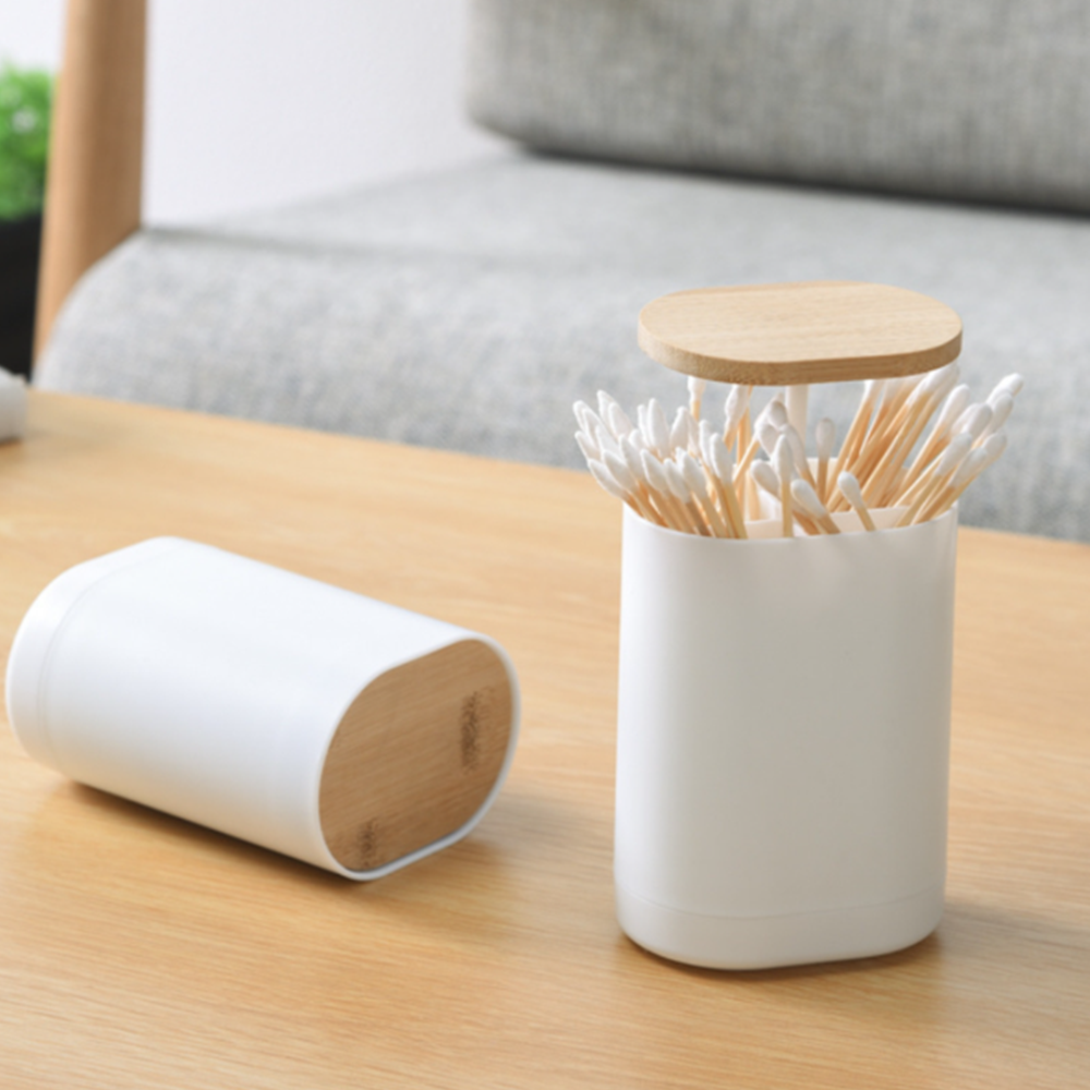 자동 열림 면봉 케이스 면봉통 보관함 디스펜서 원목 뚜껑 화장대 인테리어 케이스