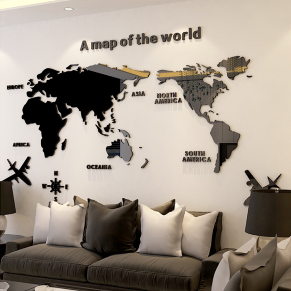 [테이프 제공] 대형 아크릴 입체 세계지도 벽장식 스티커 거실 사무실 인테리어 지도 영어학원 헬스장