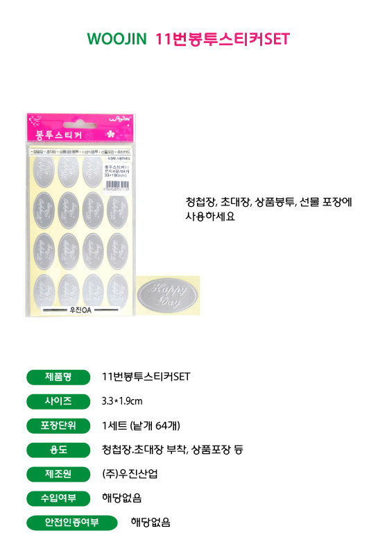 우진 봉투스티커 11번 해피데이 은지 4장 6