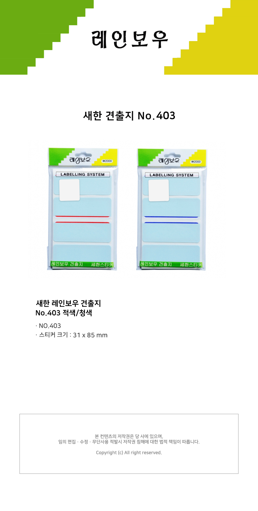 새한 견출지 보호 NO.403(청) 12장 4