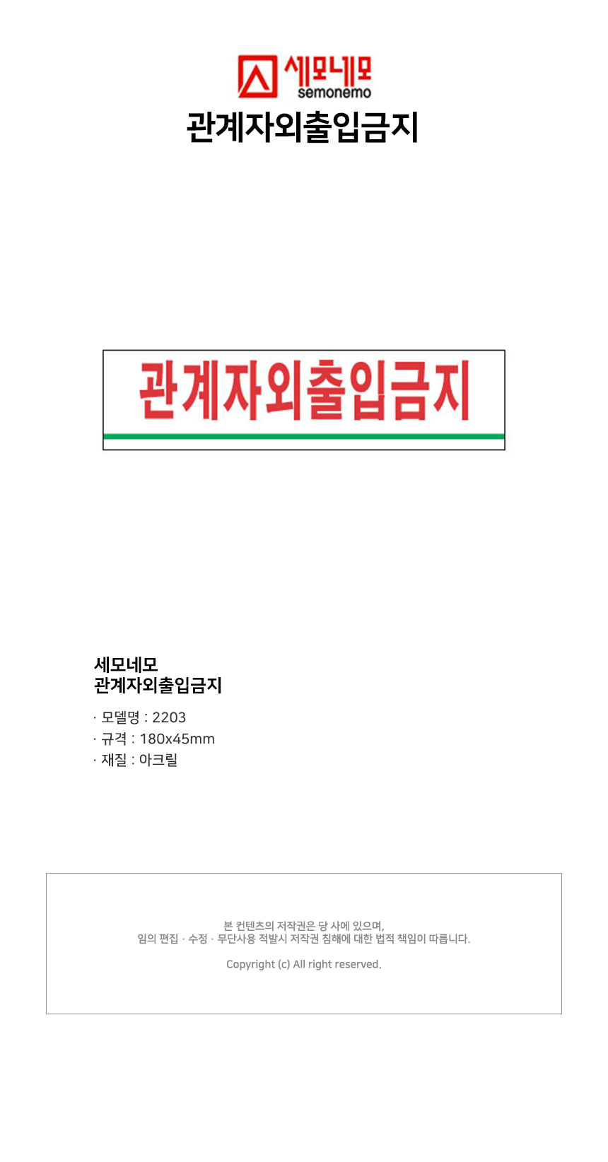 세모네모 관계자외출입금지 2203 / 180*
