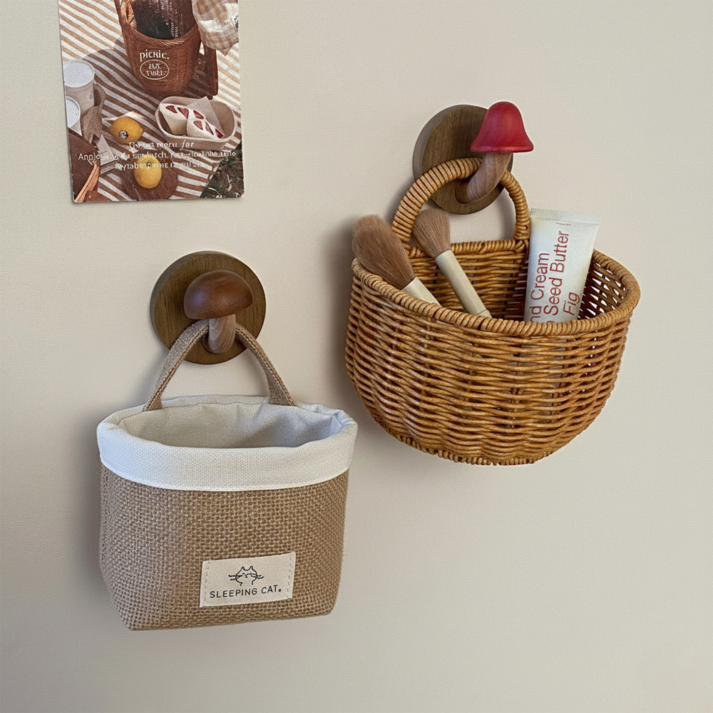 [무타공/후크+바구니세트] 감성 머쉬룸 우드 후크 무타공 현관 걸이