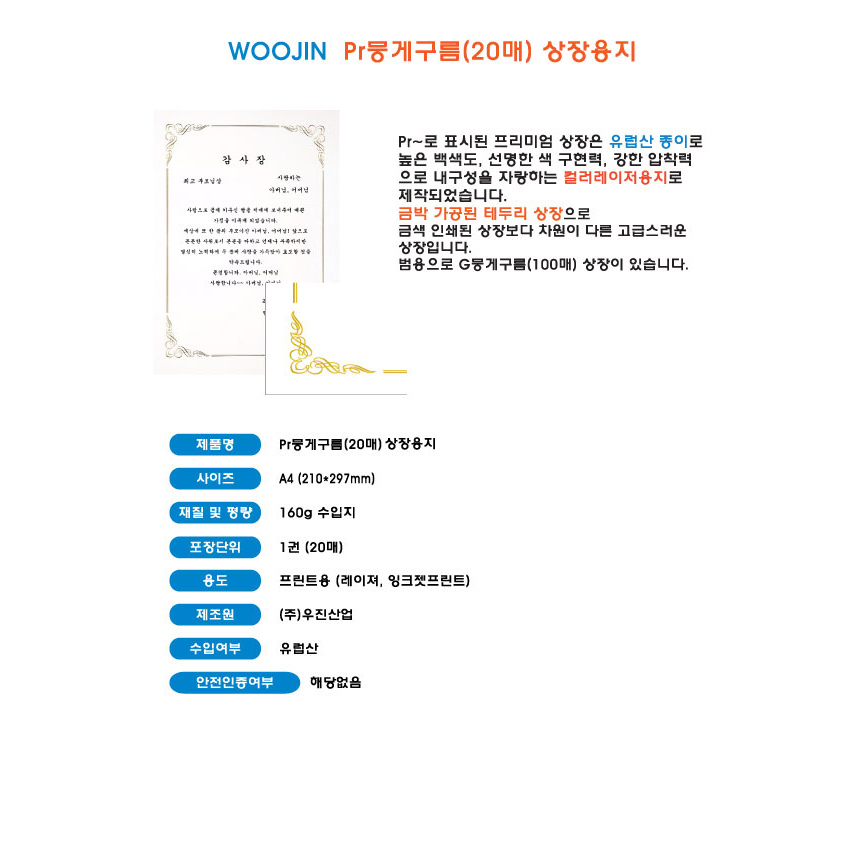 우진 금박상장용지 PR 뭉게구름 20매