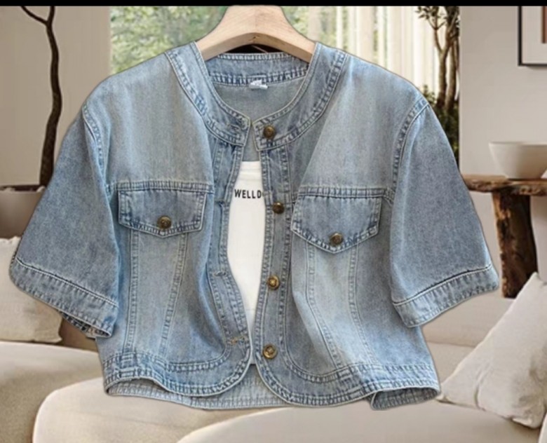 LF60700 라운드넥 여름 썸머 반팔 청 데님 재킷 자켓 아우터 데일리 코디탬