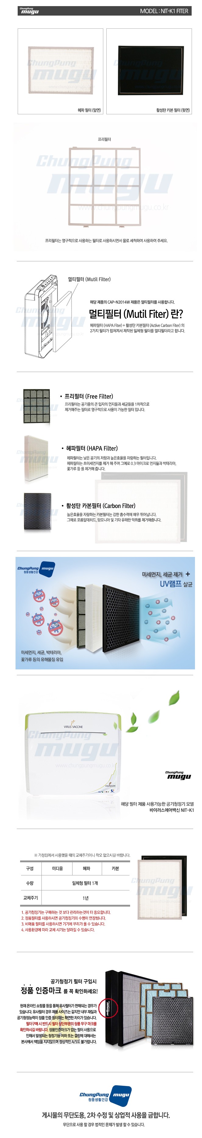ms청풍 공기청정기 교체필터 NIT-K1 헤파카본필터 고급형