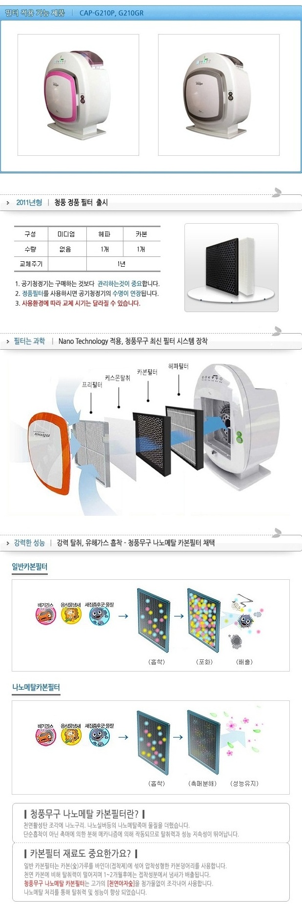 ms 청풍 공기청정기 필터 CAP-G210 헤파카본일체형