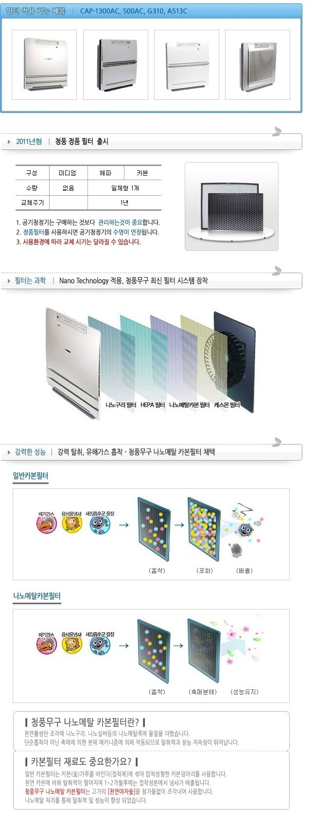ms청풍 공기청정기필터 CAP-1300AC 헤파카본 1년관리