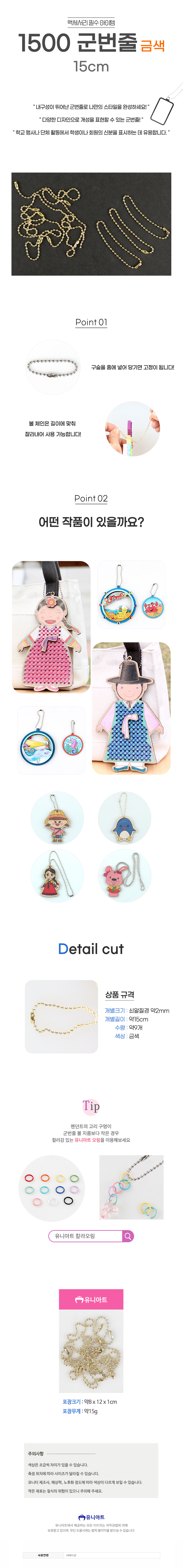 유니아트 군번줄 15cm 금색
