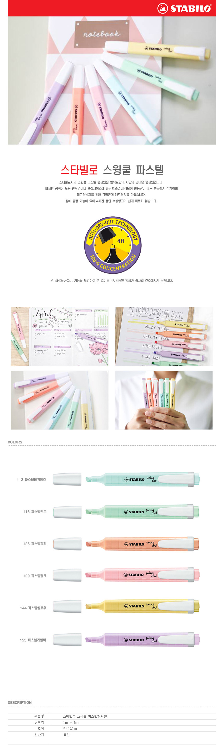 스타빌로 스윙쿨 파스텔 형광펜 터콰이즈 275