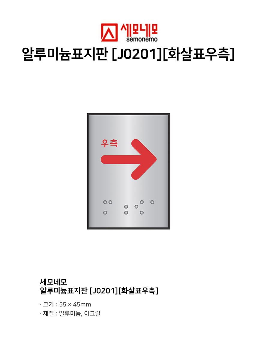 세모네모 알루미늄표지판 J0201화살표우측 /