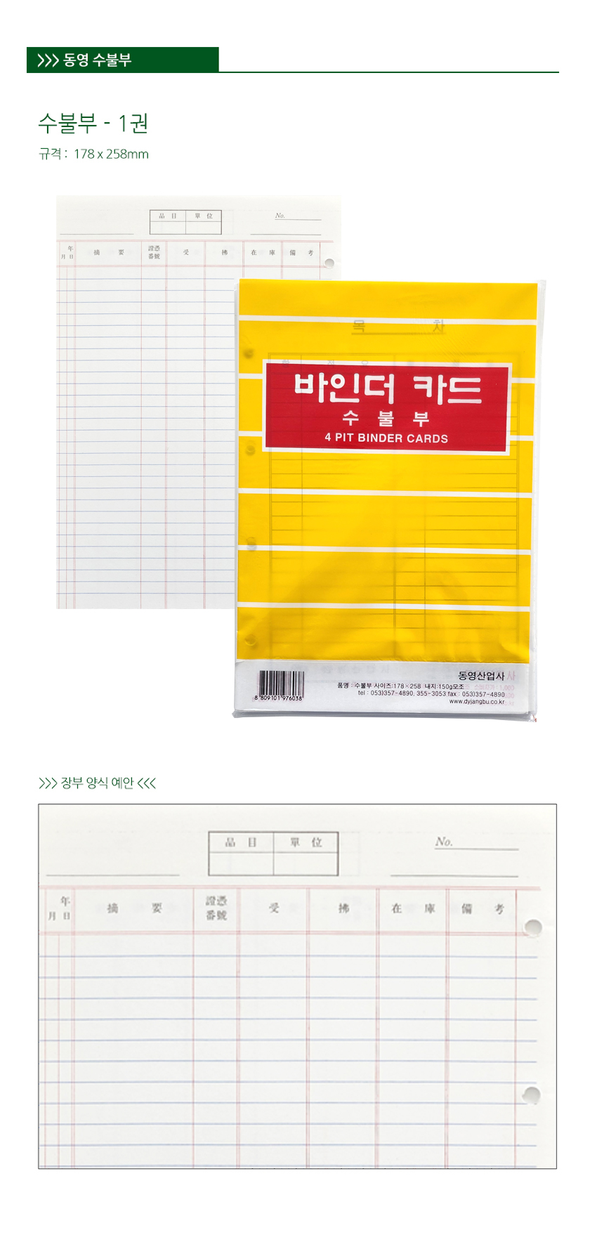 동영 2500 4공바인더카드 수불부 장부속지
