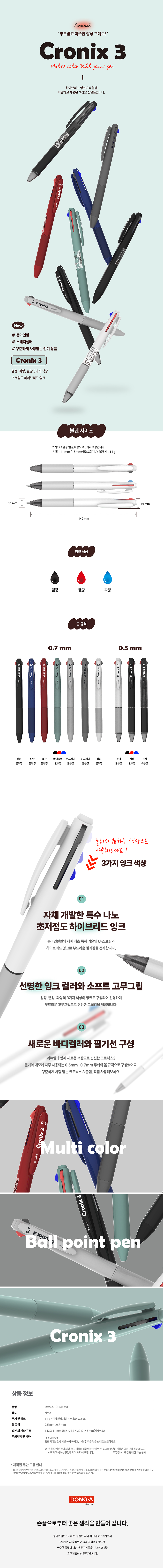 [동아] 크로닉스3 하이브리드 3색볼펜 0.7