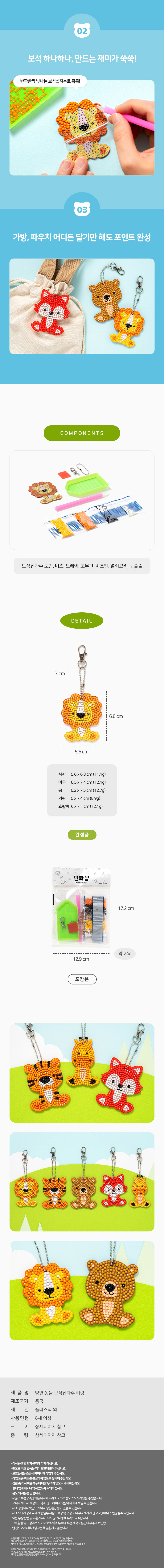 [민화샵] 양면 동물 보석십자수 키링 여우