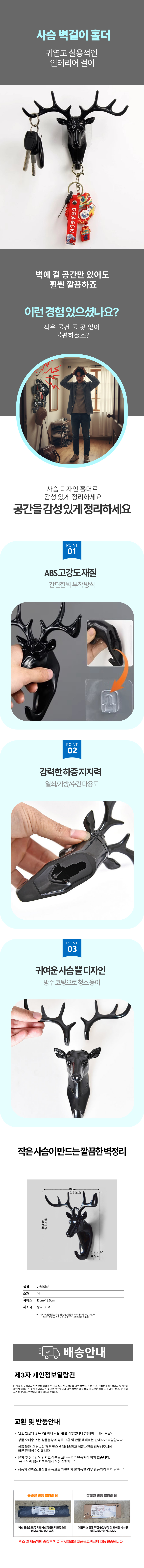 북유럽 사슴모양 무타공 벽걸이 다용도 후크