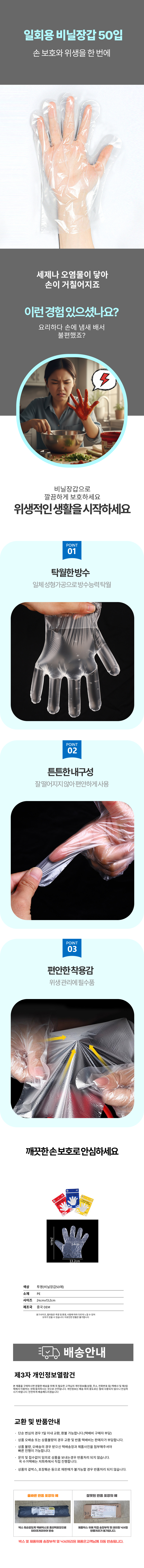 일회용 비닐장갑 50매 다용도 위생 크린장갑