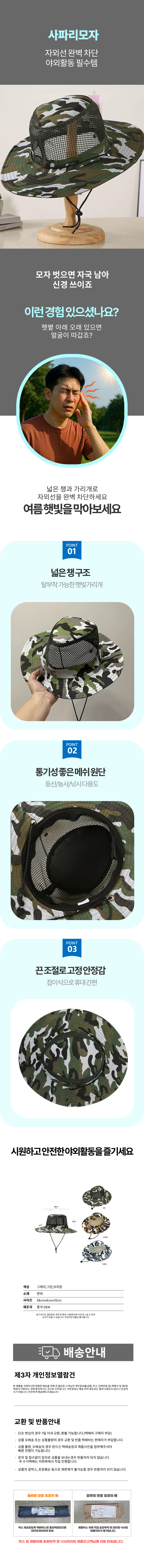 챙넓은 등산용 사파리모자 햇빛가리개 자외선차단